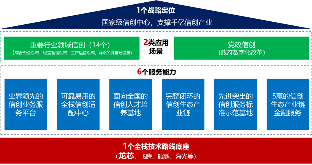 郭为提出,信创服务业务平台是载体。神州信息在争创国家级信创中心、支撑千亿信创产业的战略定位之下,基于全栈技术路线底座,通过“业界领先的信创服务业务平台”、“可靠易用的全栈信创适配中心”、“面向全国的信创人才培养基地”、“完整闭环的信创生态产业链”、“先进突出的信创服务标准示范基地”以及“5赢的信创生态产业链金融服务”这六大服务能力,实现重要行业领域信创(综合办公系统、经营管理系统、生产运营系统、网络关键基础设施)和党政信创(政府数字化改革)两类场景应用,构建全国领先的信创金华模式设计蓝图。