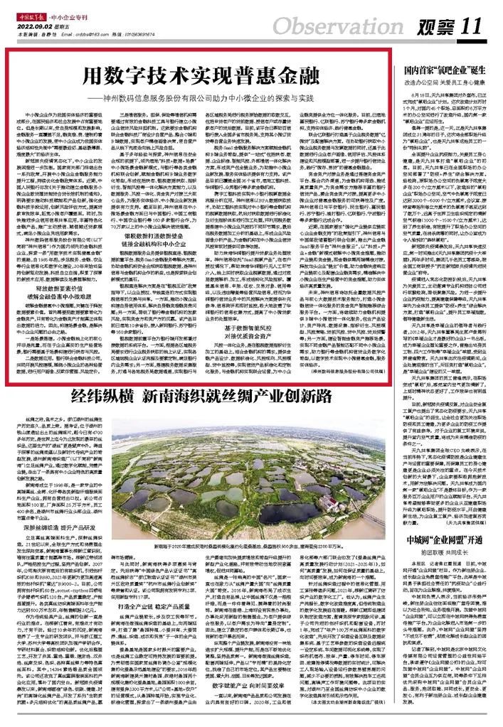 喜迎二十大 | 中国改革报:用数字技术实现普惠金融——神州信息助力中小微企业的探索与实践