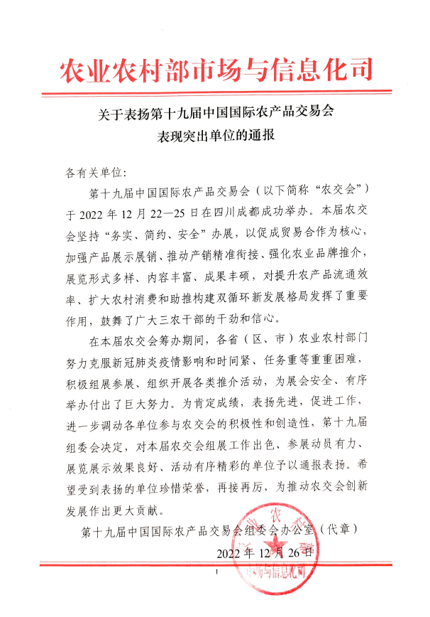 12月22日-25日,由农业农村部主办的第十九届中国国际农产品交易会(以下简称“农交会”)在成都中国西部国际博览城盛大举行!这是“二十大”后规模最大的全产业链、全品类、全景式的三农展会。本届展会是我国农业最新技术成果、“名优土特新”农产品的集中展示,也是后疫情时代三农产业复苏引领、企业弯道超车的全新平台。神州信息以“赋能数据融通,服务乡村振兴”为主题,携数字农业农村、农业农村大数据、金融科技赋能三农等系列解决方案及案例成果成功亮相成都农交会3号馆33.2E30展位
