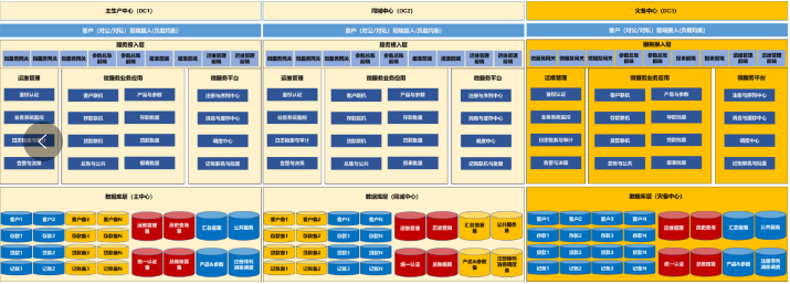 第一、同城双活高可用方案。金融行业核心系统架构升级方案中的同城双活高可用方案,两个中心均部署核心应用系统,按客户和业务进行应用分流,双中心的数据库互为主备高可用。