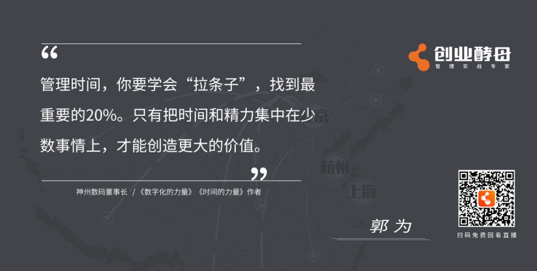 导语:时间管理,之于企业,之于人生有什么意义?如何做好时间管理?如何把时间花在最重要的战略管理上?如何以时间管理打造组织领导力?……在5月16日,333体育与创业酵母联合举办的《时间的力量——企业时间管理实践与思考》直播对谈中,神州信息董事长、《时间的力量》作者郭为与创业酵母创始人张丽俊围绕“时间管理、战略管理、组织变革、团队管理、领导力”等话题深度探讨,以下为直播内容精选。